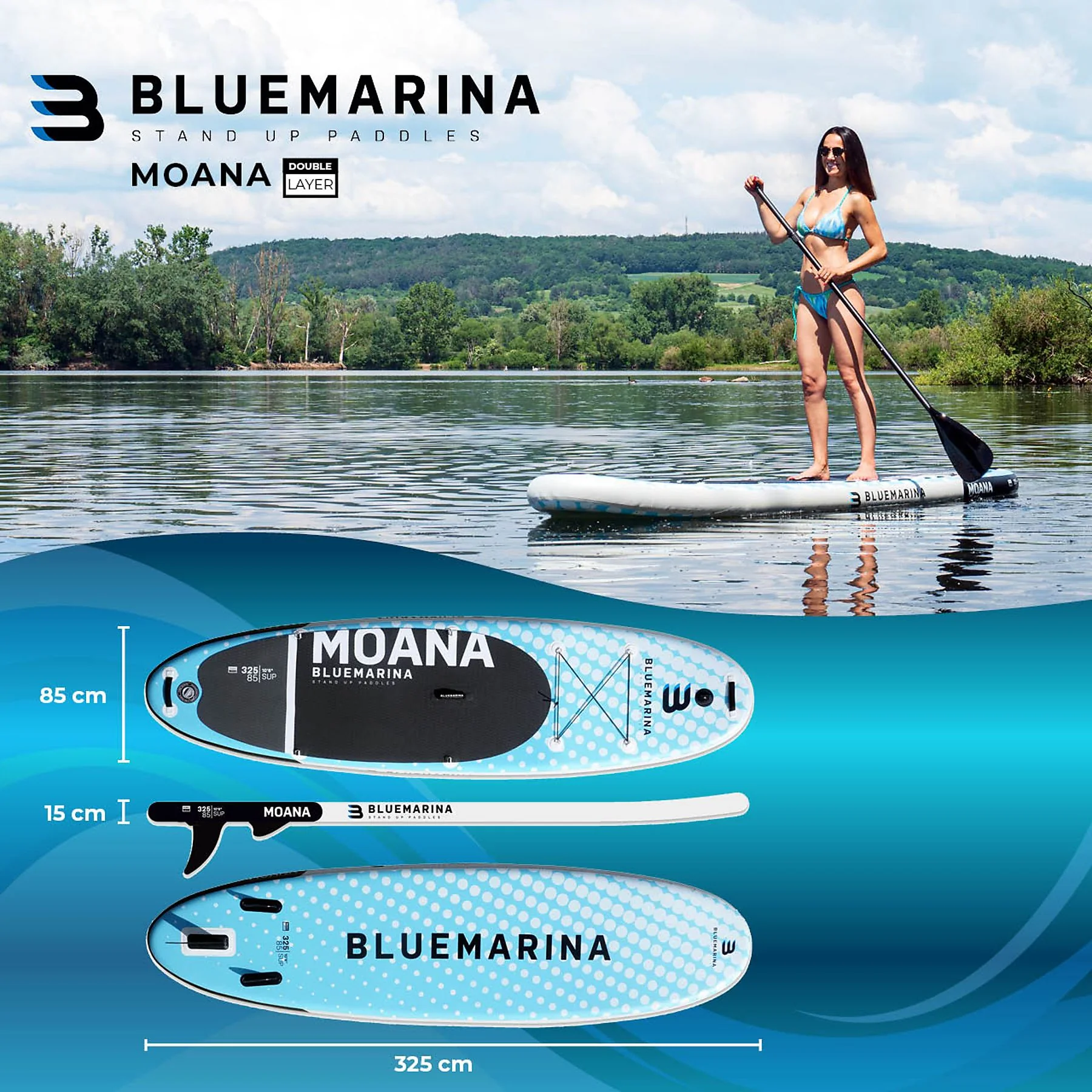 BLUEMARINA Moana 2022 SUP Board Stand Up Paddle, weiß blau schwarz