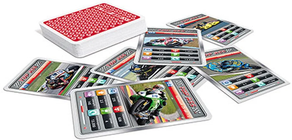 Das TOP ASS Quartett „Motorräder“ von Cartamundi bringt jede Menge Spielspaß für alle Motorradfans! In diesem klassischen Kartenspiel messen sich die heißesten Maschinen der Welt in Kategorien wie Hubraum, PS-Zahl und Höchstgeschwindigkeit.