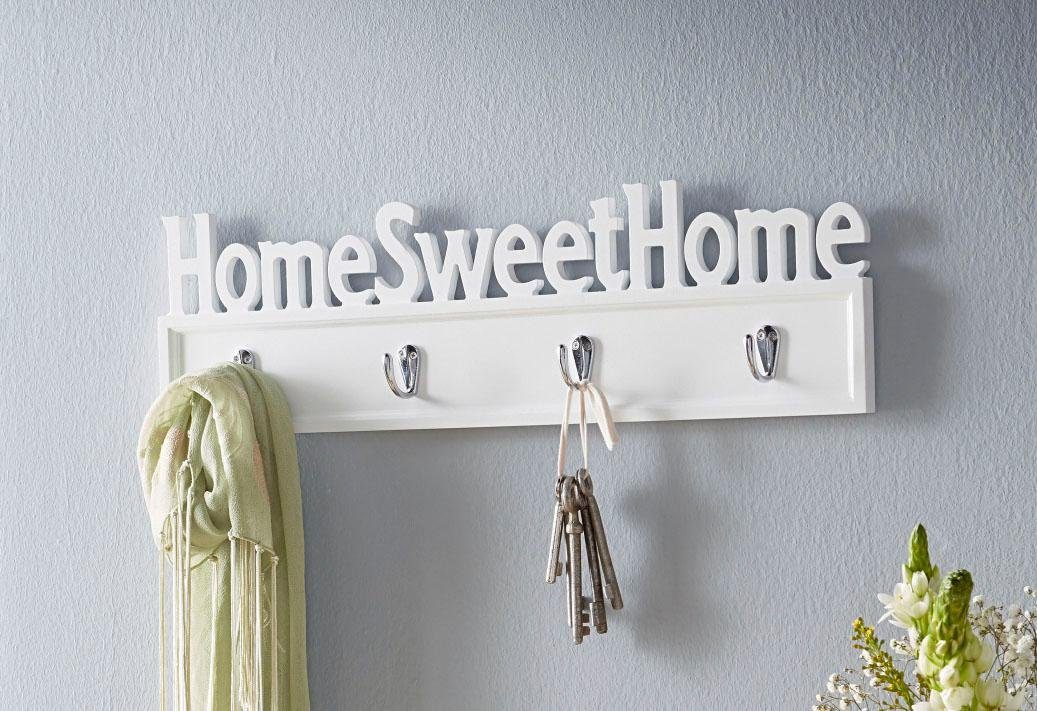 Hakenleiste „Home Sweet Home“ aus weiß lackiertem MDF