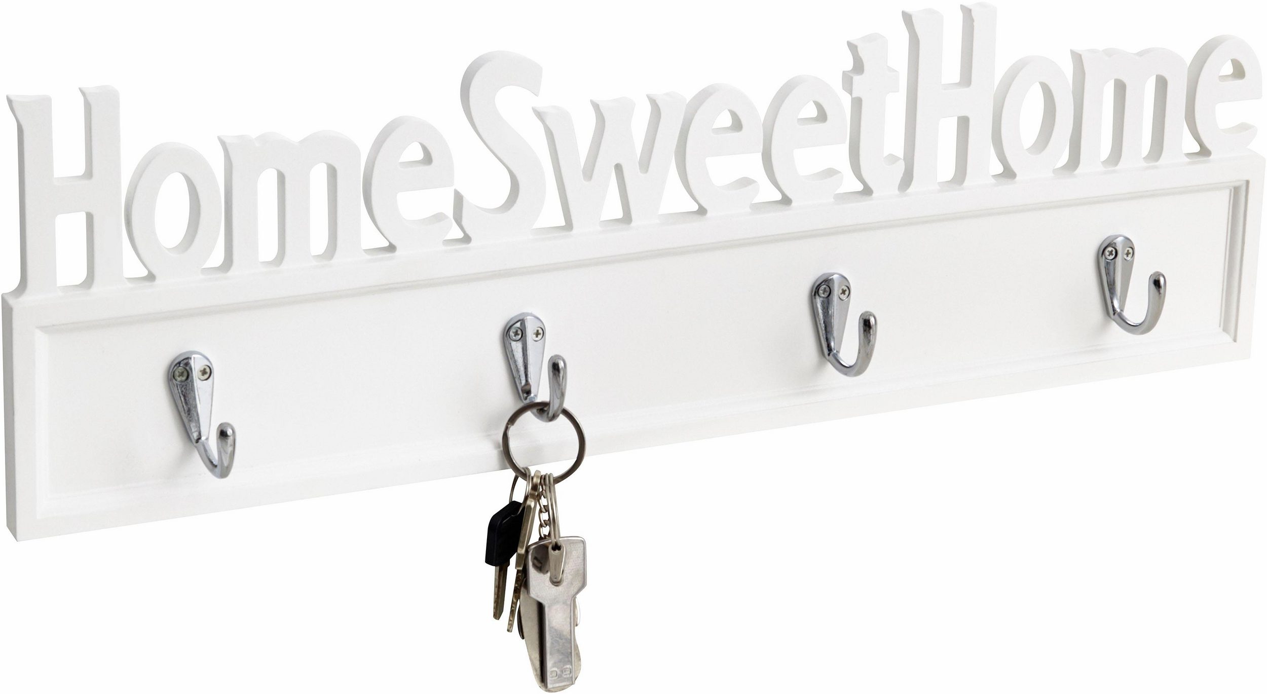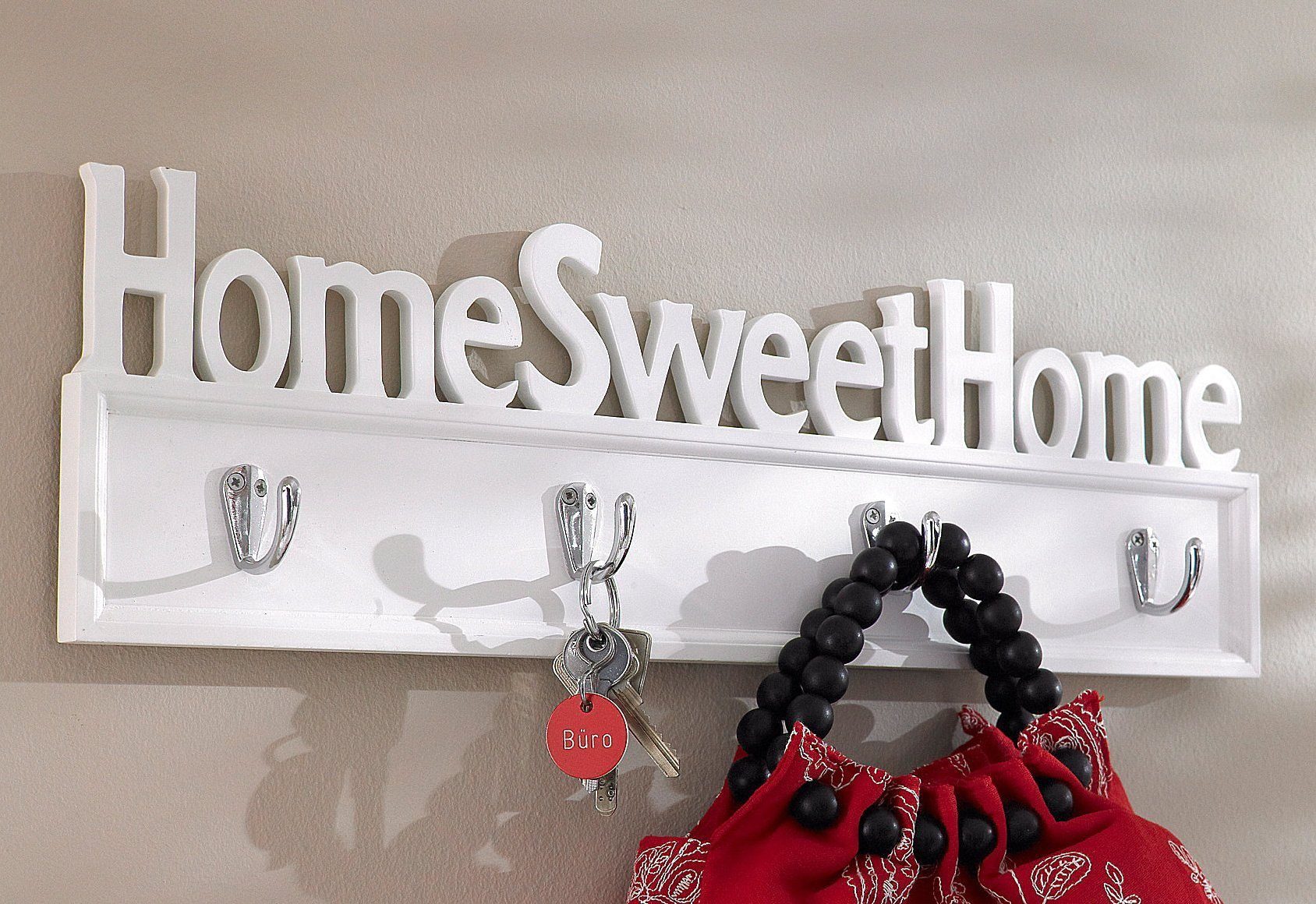 Produktinformationen "Hakenleiste „Home Sweet Home“ aus weiß lackiertem MDF"