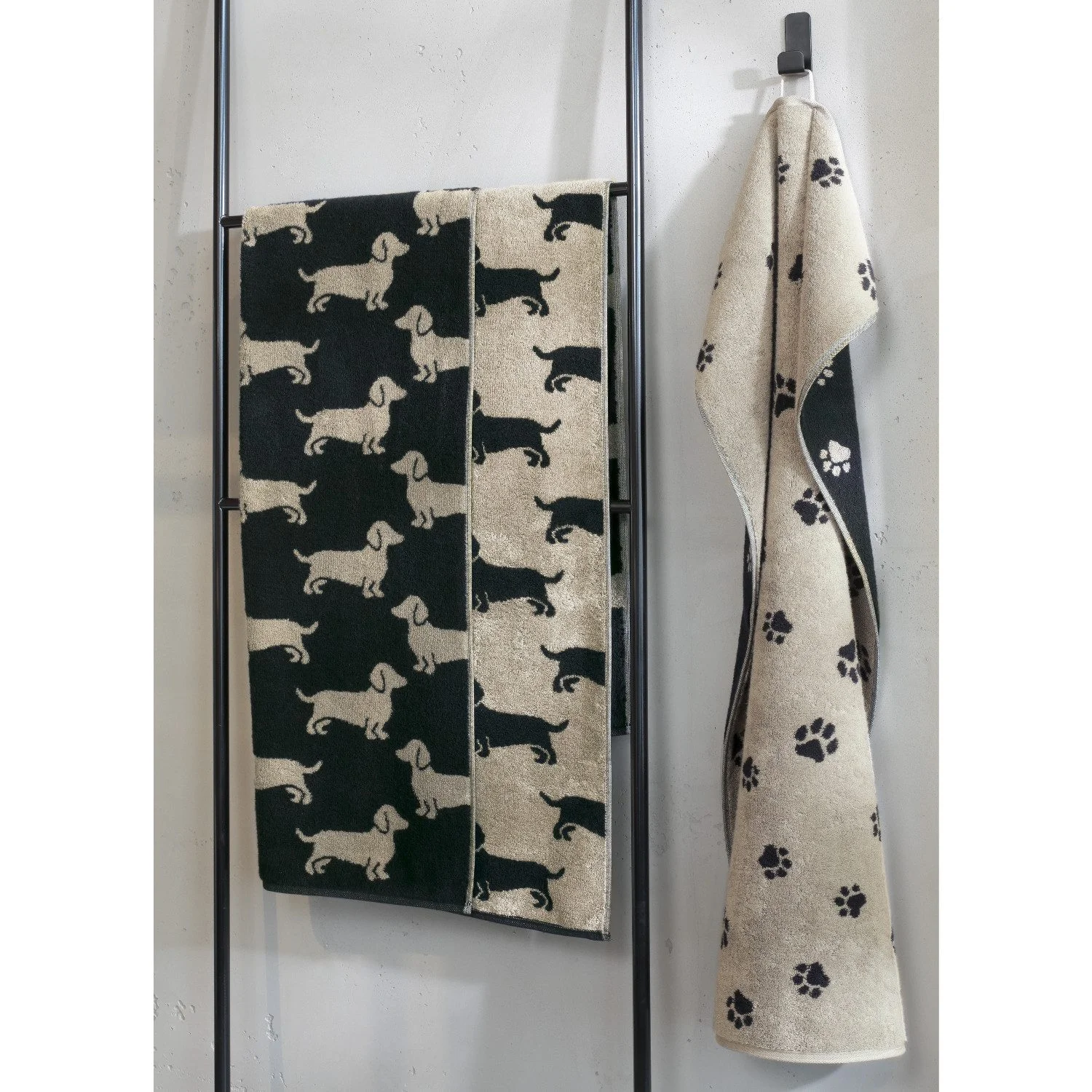 Die Cawö Handtuchserie „We Love Dogs“ begeistert mit ihrem charmanten Dackelmotiv und ist das perfekte Accessoire für Hundeliebhaber. Gefertigt aus 100 % hochwertiger Baumwolle, überzeugt das Handtuch durch seine flauschige Walkfrottier-Qualität und angenehme Weichheit auf der Haut. Das doppelseitige Wendedesign in Schwarz und Beige verleiht dem Bad einen stilvollen und zugleich verspielten Charakter.
