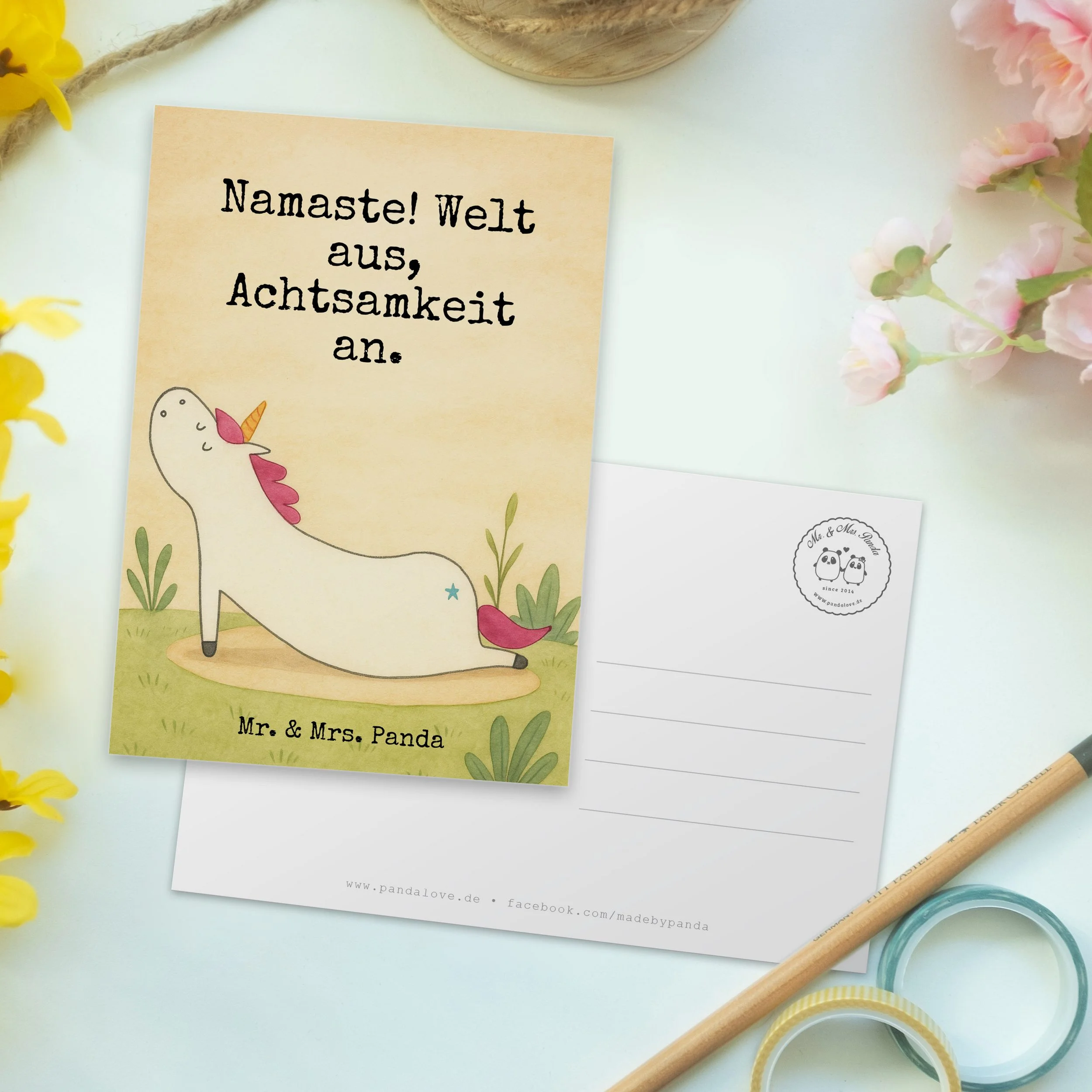 Postkarte A6 „Einhorn Yoga“ – Weiß, Mr. & Mrs. Panda